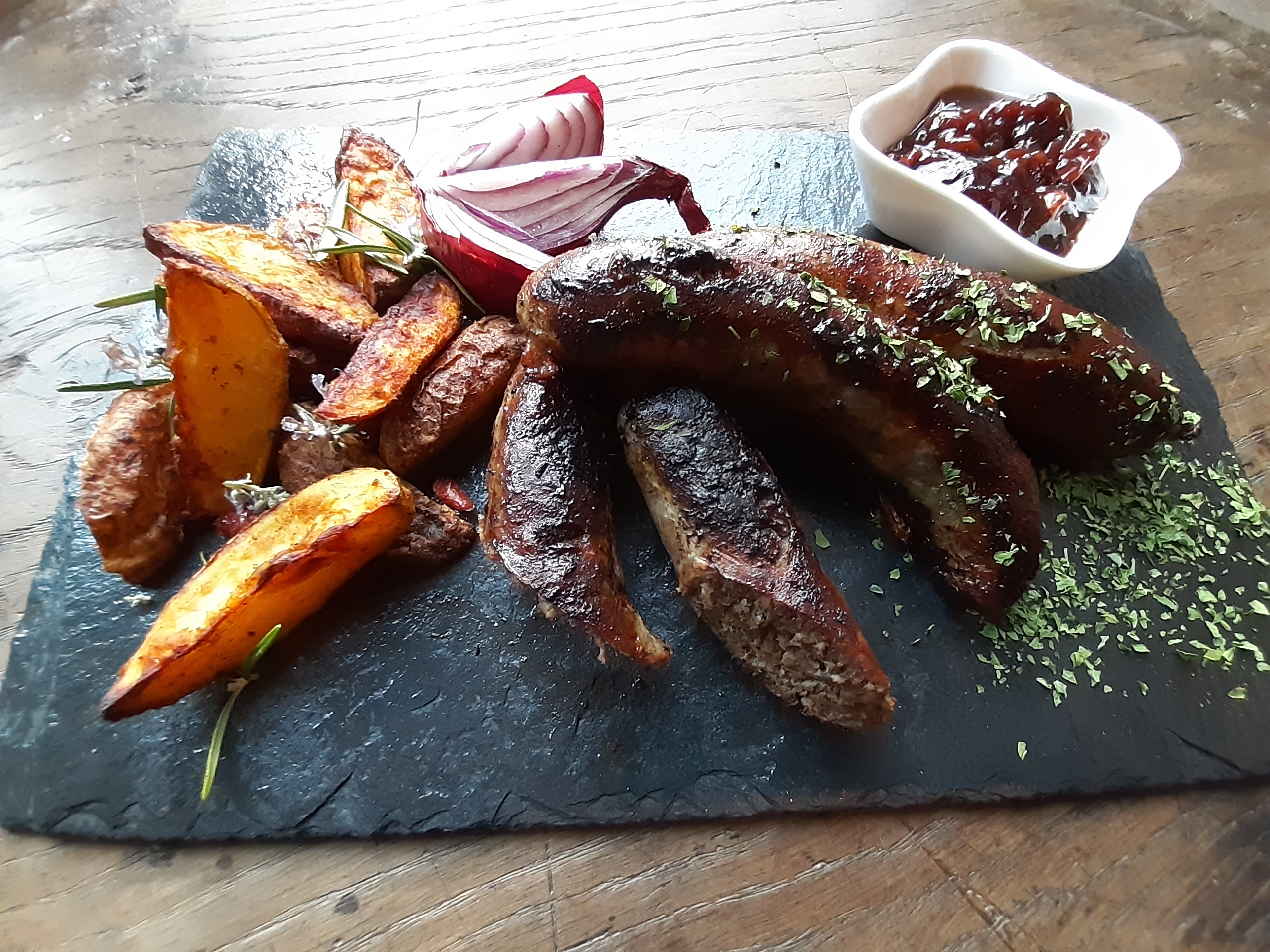 Die Salami vom Schinken in klassischer Weise hergestellt